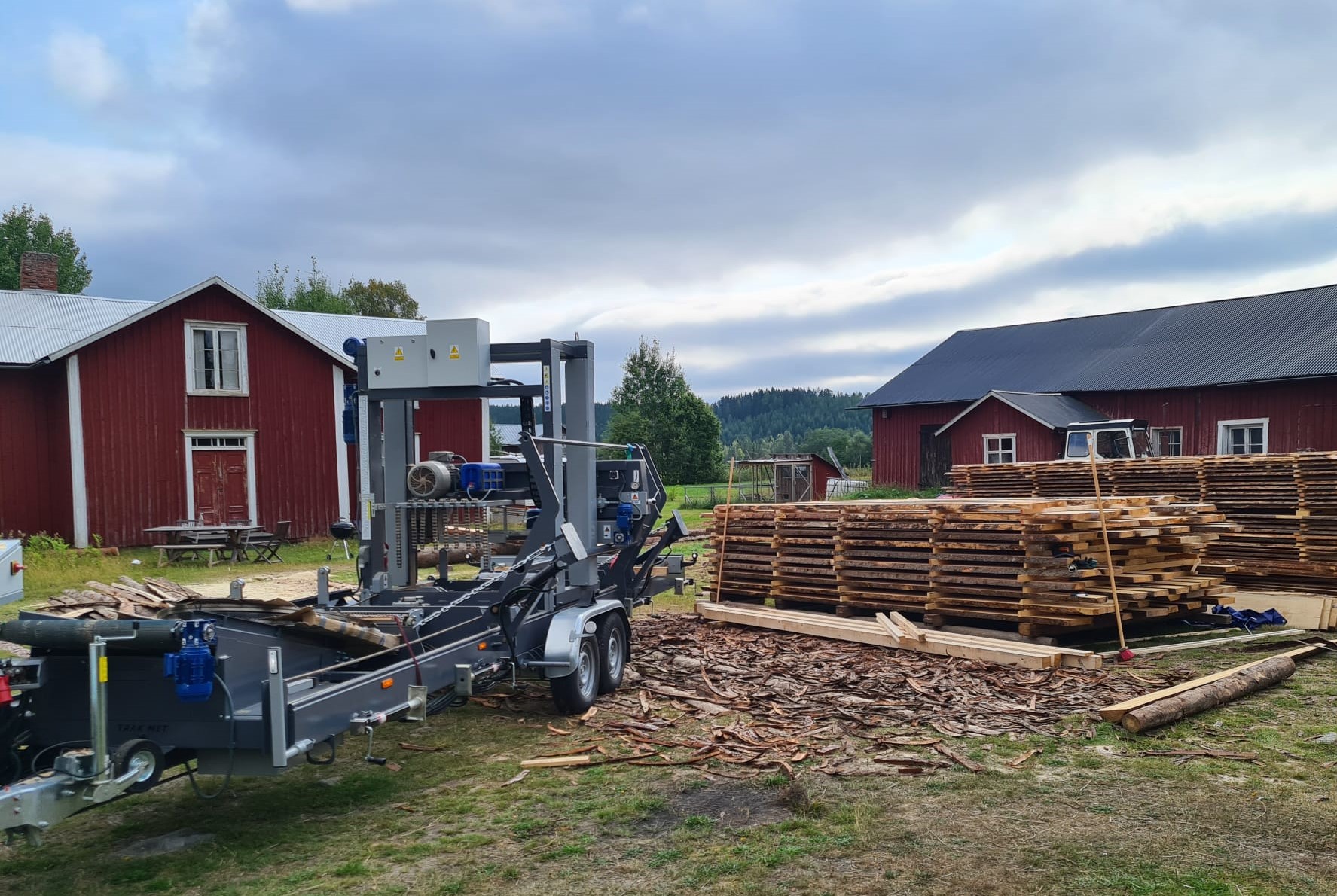 Undvik tidkrävande och kostsam transport till ett sågverk på annan plats. Med vårt mobila sågverk tar vi oss ut till de flesta platser i Västerbotten och Västernorrland. Vi kan anslutas till fast elnät (3-fas) eller eget elverk.